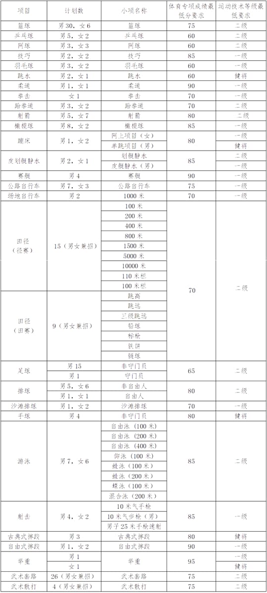 (一)我校依据招生项目计划、运动员技术等级要求和运动队建设需求,分项目划定体育专项考试成绩最低录取控制线。